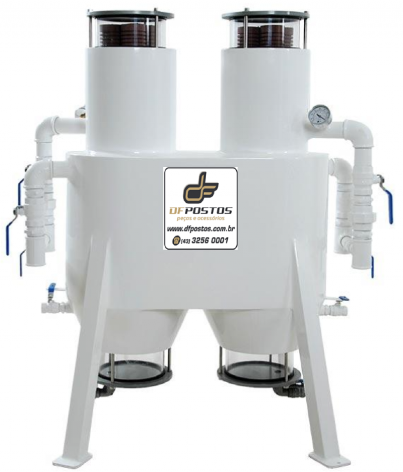 Composto por corpo em aço carbono, visores de policarbonato de alta resistência, entrada e saída de 1 ½”, elementos de celulose e resina fenolica com varição de filtragem de 1 a 150 microns, tampas em aço carbono, sistema “by-pass” para desvio momentâneo de fluxo, dreno na parte inferior e vacuômetro para indicar saturação dos elementos filtrantes.